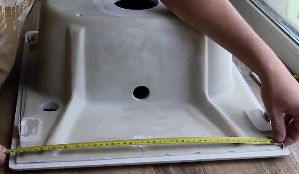 - Возьмите раковину и положите ее на столешницу. Затем черным маркером обведите столешницу по контуру раковины.