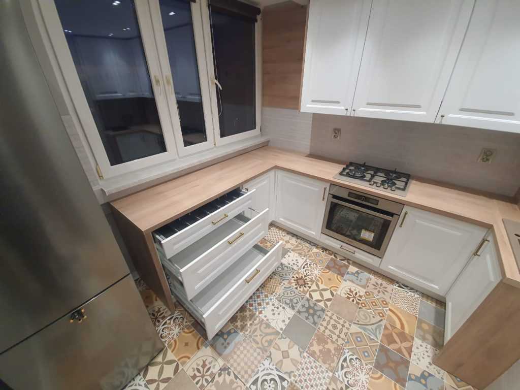 Обычно мебельные производители закупают готовые полотна, имеющие определенные размеры в ширину и длину, и режут их на нужные куски. При заказе на крупных фабриках будьте готовы к тому, что у них есть своя стандартная сетка, адаптированная ко всем частям кухонной мебели. Это связано с большим объемом производства. Им просто невыгодно часто перенастраивать станки и делать столешницу шириной 65 или 70 см вместо 60.