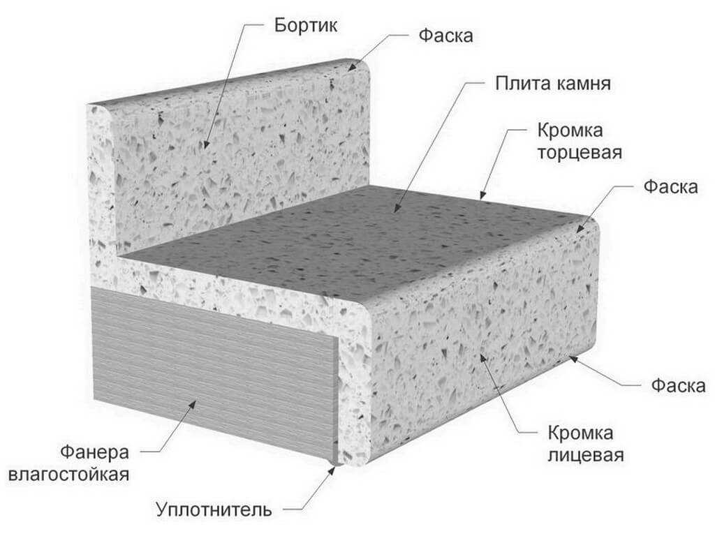 Кварцевая сэндвич-столешница — это относительно новый продукт на рынке. Представляет собой многослойную конструкцию, например: