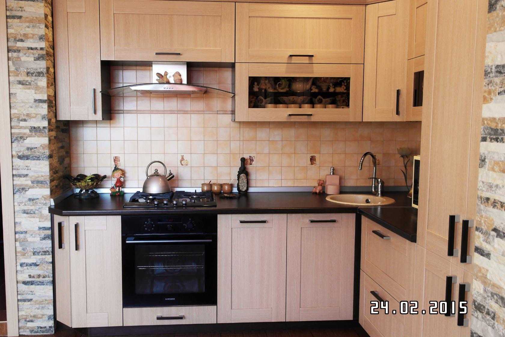 Угловой кухонный гарнитур для маленькой кухни 6 кв.м в хрущевке, выполненный на заказ
