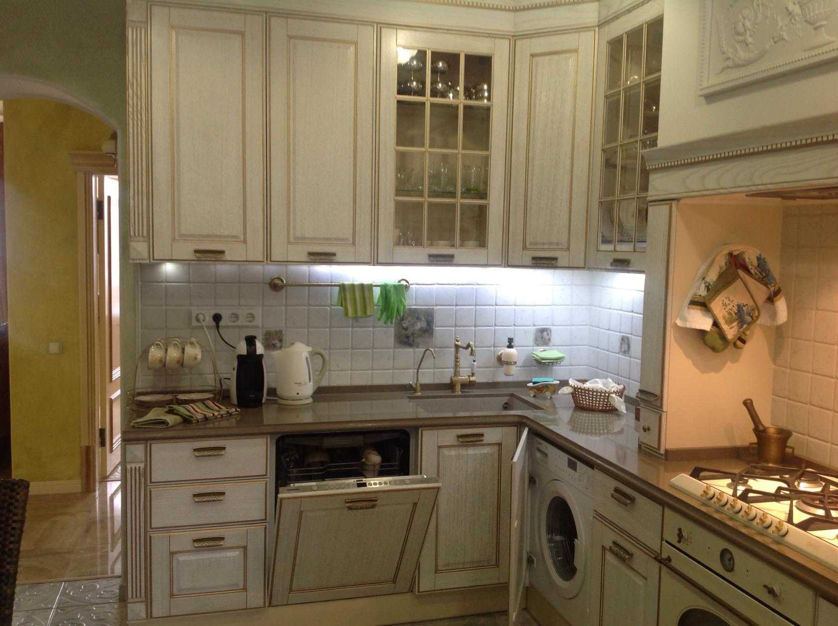 - Отдайте предпочтение встроенной технике. Так маленькая угловая кухня станет еще более компактной, собранной, а главное – стилистически выдержанной.