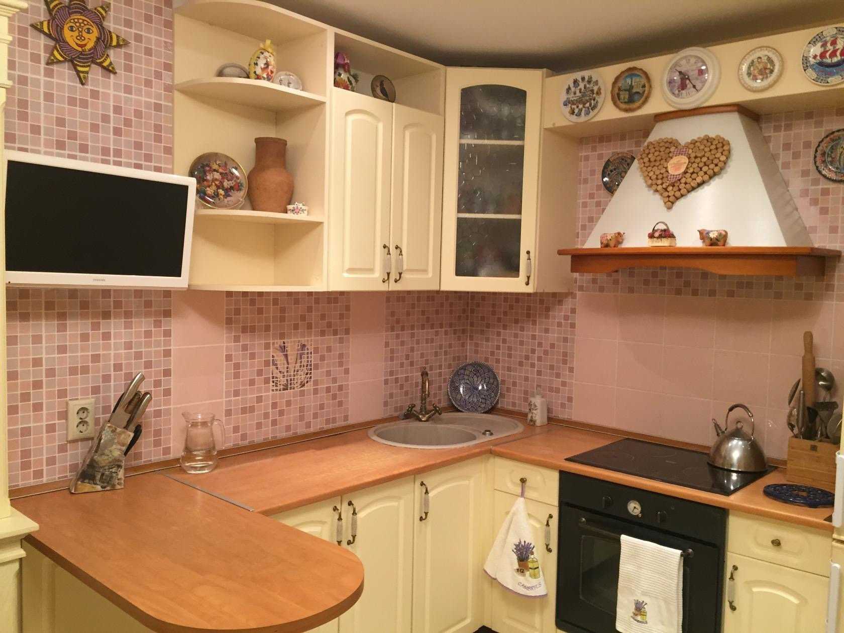 Маленькая угловая кухня с необычными решениями
