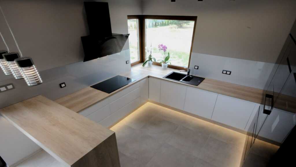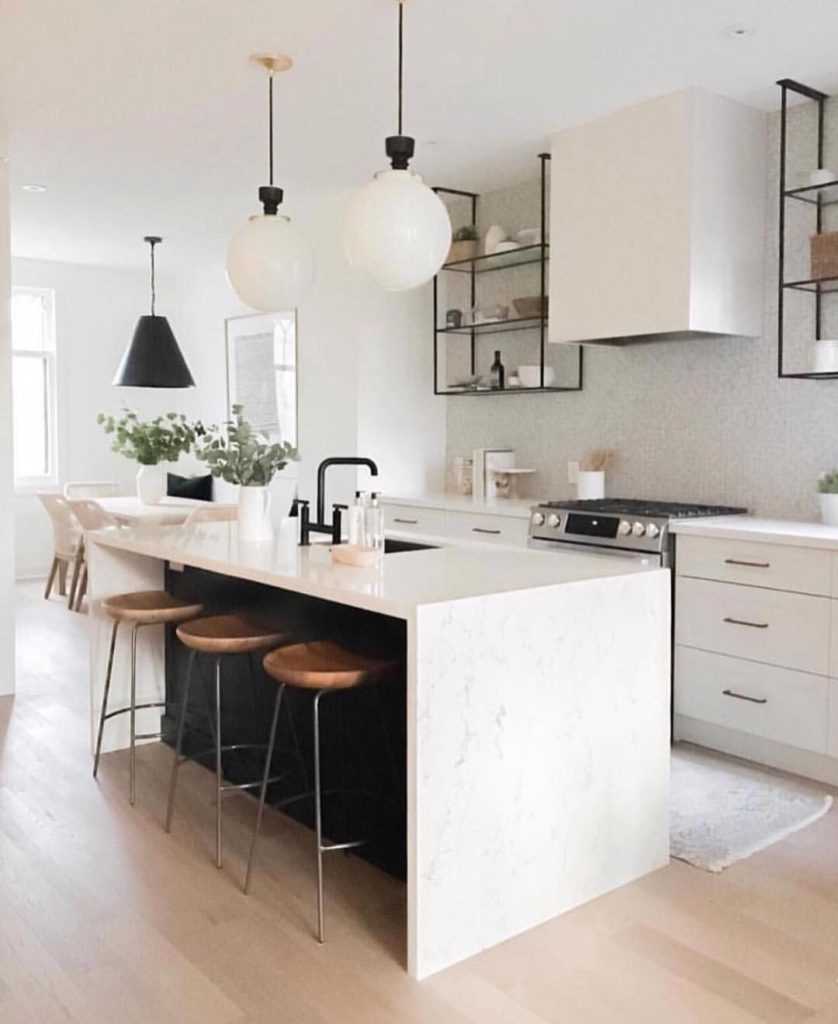 Кухня с барной стойкой – это не только элемент эстетики. Это также, решение для практиков. Если вы выберете барную стойку с полками, вы не только получите дополнительную столешницу или место, где можно перекусить, но и получите место для хранения мелких предметов, которые так необходимы на каждой кухне.