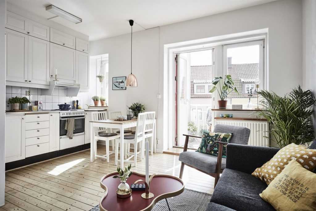 2. Не перегружайте интерьер. Лучшее решение для небольшой кухни студии — нейтральный фон и яркие акценты. Разные оттенки белого, бежевого, серого, выбеленные нежные оттенки желтого, голубого и зеленого добавят маленькой квартире света и ощущения простора.