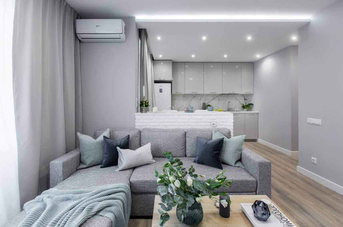 Если у вас студия, то остается лишь создать комфорт и обеспечить функциональность в зоне кухни-гостиной. Рекомендуем использовать натуральные материалы в теплых тонах. Натуральность – тренд последних нескольких лет. Натуральные материалы наполнят помещение «теплом», создавая особую атмосферу комфорта.