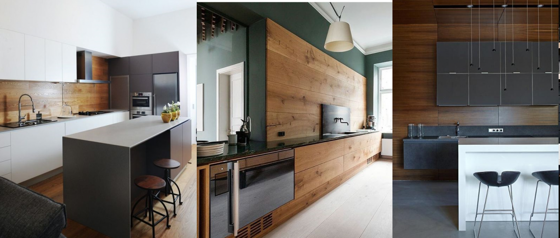 Важно: деревянные панели на кухне должны быть покрыты специальным восковым составом, который позволит им выстоять в «агрессивной» кухонной среде.