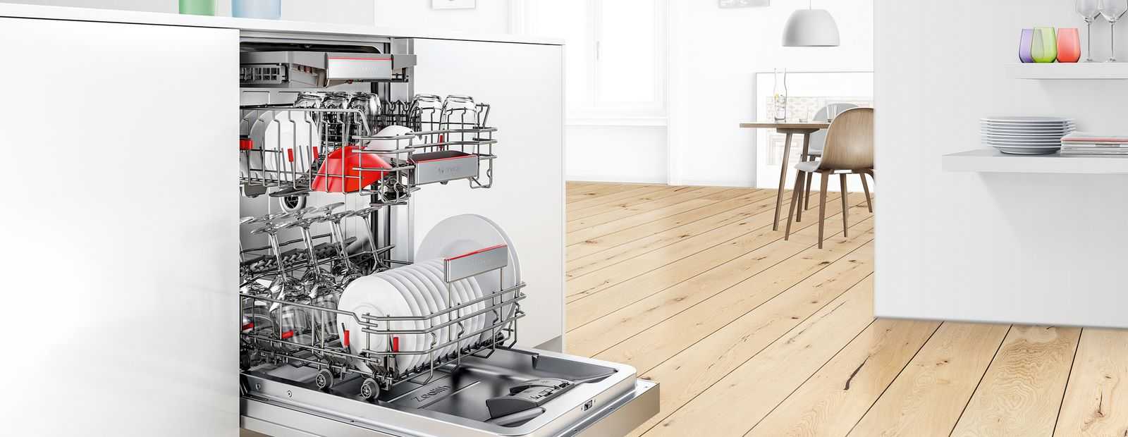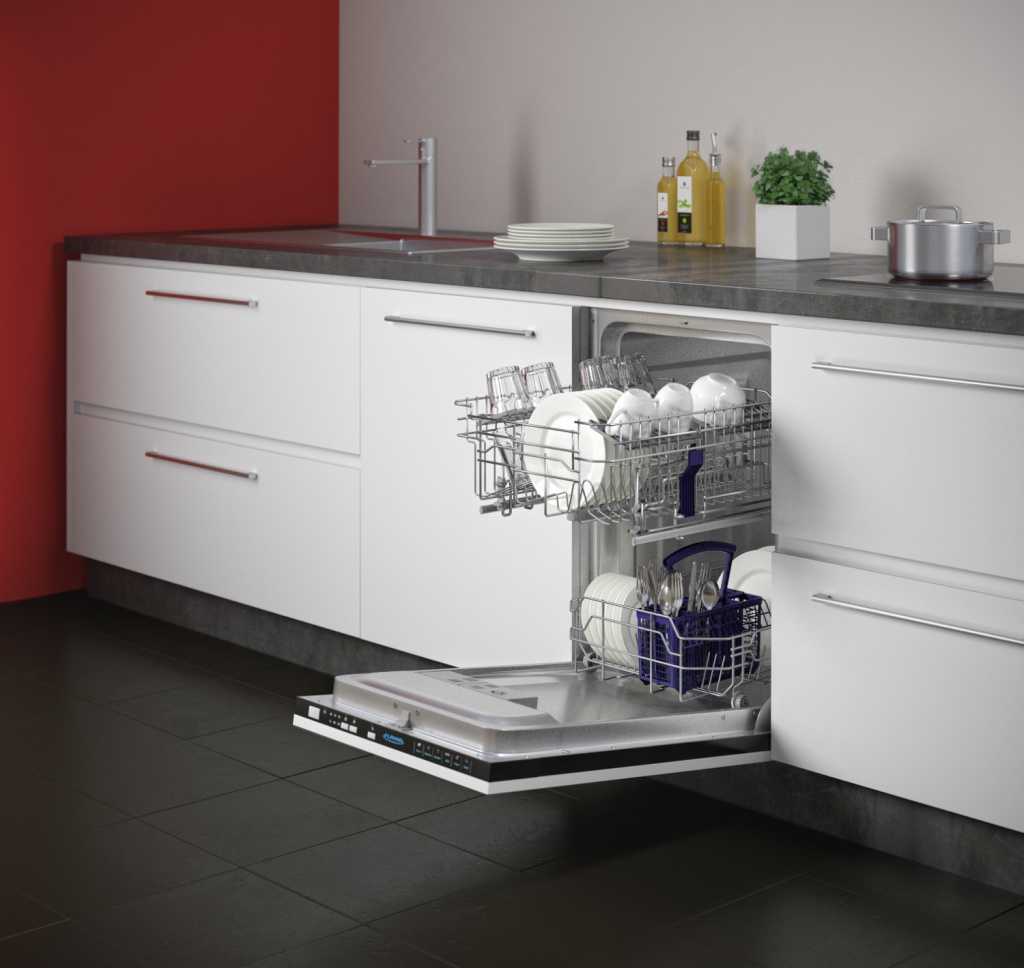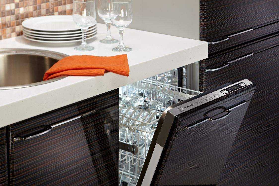 - Посудомоечная машина, полностью встроенная в кухню.