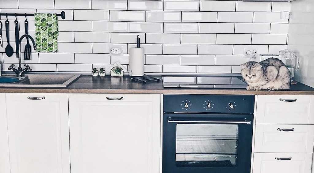 Плиточный фартук — классика для наших квартир. Существует такое разнообразие кафеля, что легко создать полностью уникальный дизайн. Несмотря на это, есть даже дизайнерские тренды среди плитки на фартук. Например, еще пару лет назад все поголовно устанавливали на кухню «кабанчик» — кафель, напоминающий белый кирпич. Сейчас эта тенденция постепенно сходит на нет.
