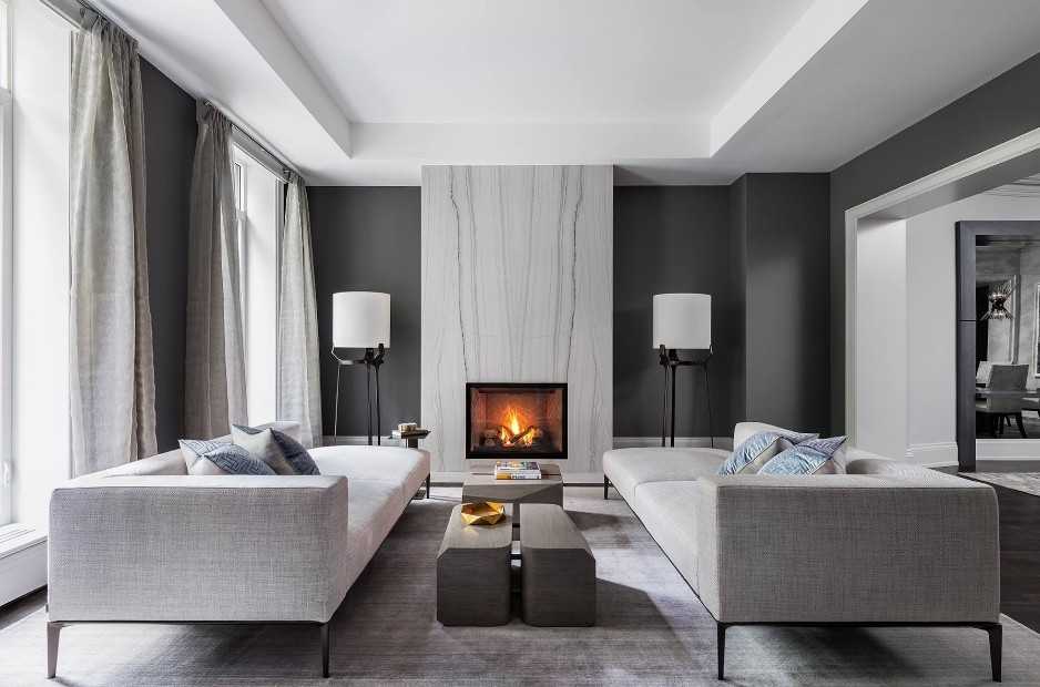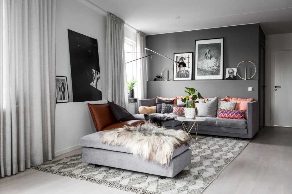 Варианты цветового решения в серой гостиной