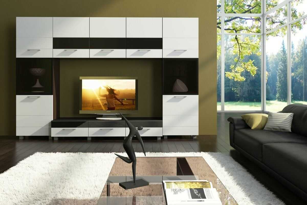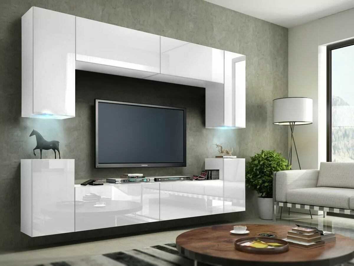Белая глянцевая мебель для гостиной: цветовая умеренность