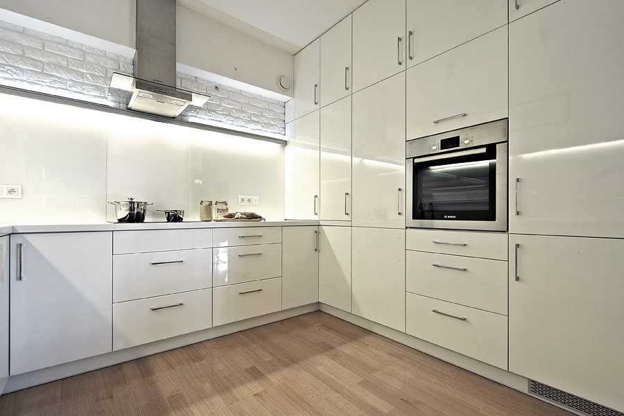Хотите разместить белый кирпич на кухне над столешницей? Выбирайте дополнительную защиту на месте плиты и мойки. Используйте стеклянные панели, которые не повлияют отрицательно на оформление, а с их гладкой поверхности можно легко удалить любую грязь.