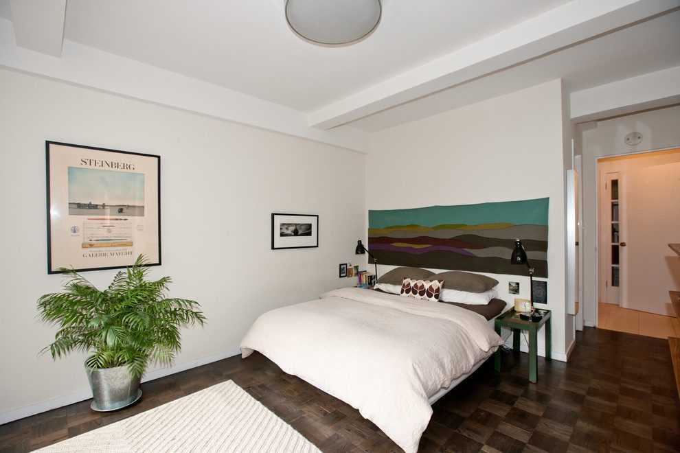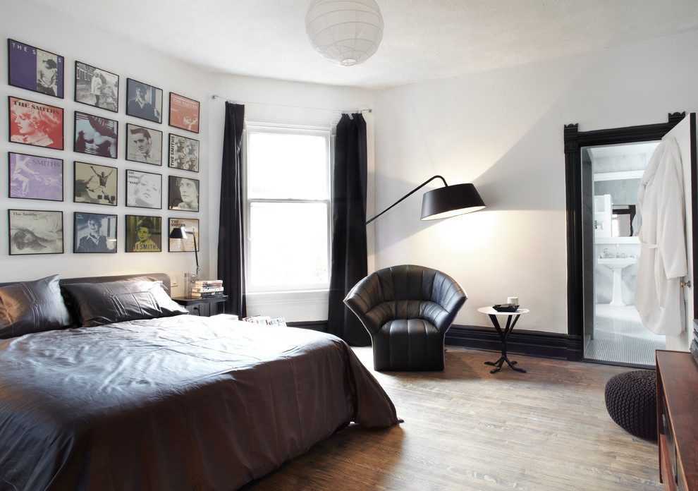 Чтобы красиво расположить рамки с фото на стене, достаточно следовать единому правилу – подчеркнуть параллели. В этой минималистичной комнате всего несколько деталей на стене – рамки разных размеров. Здесь нет последовательных отступов и какой-либо симметрии. Однако свою роль фотографии выполняют отлично: аккуратные, ровные, оттягивают взгляд от бледной стены, при этом не перегружая интерьер.