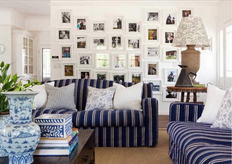 Кстати, большое количество фото на стене скроет заметные ее огрехи. Постарайтесь избегать больших отступов – в остальном все на ваше усмотрение.