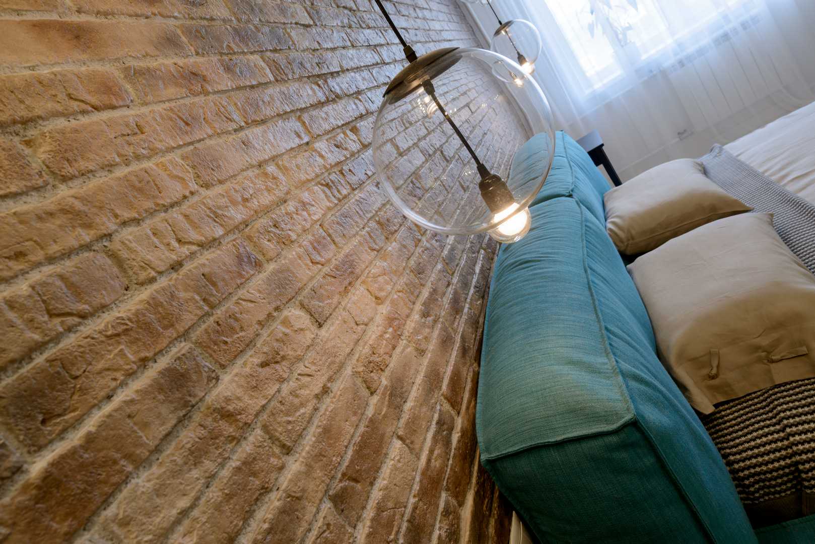 в недостаточно просторных помещениях каменная облицовка, как правило, выполняется только на отдельной части стеновой поверхности, что предотвращает перегрузку декора тяжелых материалом и делает интерьер более легким для визуального восприятия;