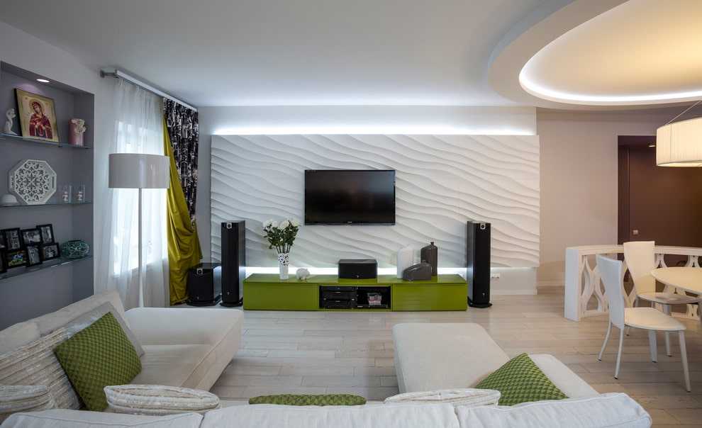 В особых случаях гипсокартонная конструкция для телевизора может даже зонировать помещение