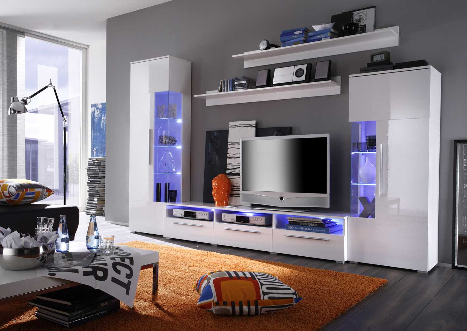 Белая глянцевая стенка: примеры лучших сочетаний в интерьере гостиной