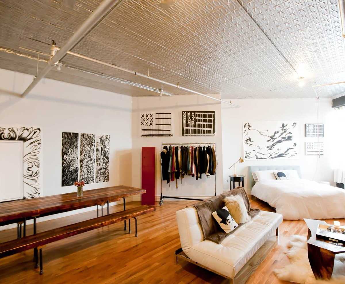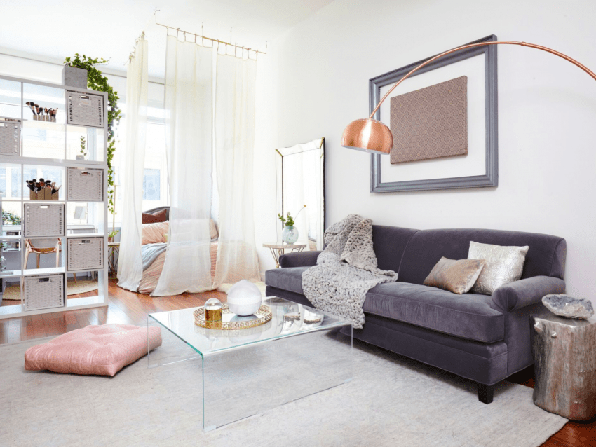 В меньшем пространстве вы не обречены на то, чтобы спать на неуютной кушетке. Более удобным решением, успешно используемым стилистами, является создание зоны отдыха с полноразмерной кроватью, которую можно отделить занавесом из ткани или молочного стекла. Таким образом, ваша гостиная и спальня могут меняться до неузнаваемости, когда в этом есть необходимость.