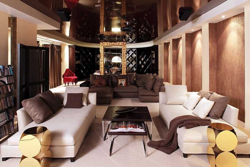 В гостиной стоит установить несколько ламп около дивана, журнального столика и вблизи полок с книгами. Только так вы сможете получить гармоничное и правильное освещение всего дома.