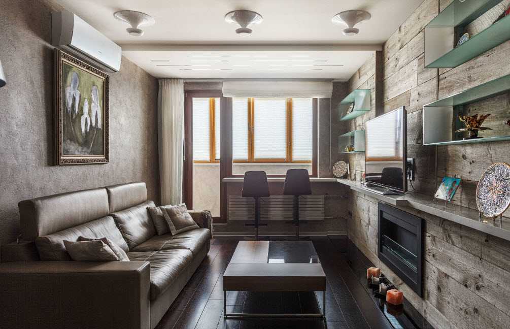 В гостиной даже самых скромных размеров можно не ограничивать себя при отборе цветовых композиций и декоративных элементов. Вполне удается обеспечить оптимальные условия для всех живущих в доме, однако интерьер перегружать недопустимо. Для визуальной корректировки недостаточной площади можно использовать максимум светильников. Если визуального исправления мало, применяется планировка гостиной с балконом, то есть объединяются эти два помещения.