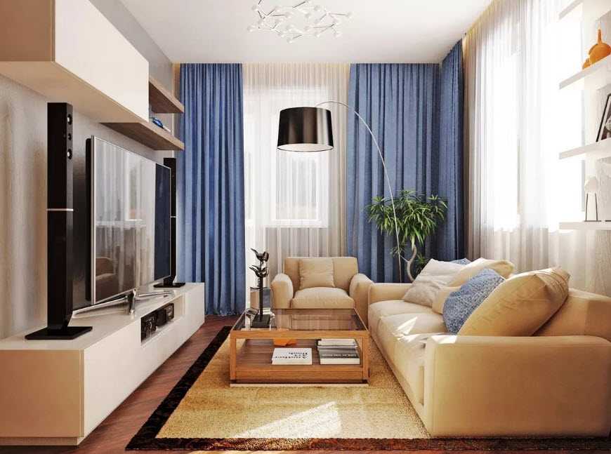 Разговор об особенностях дизайна зала в квартире уместно начать с изучения его габаритных разновидностей. В большом пространстве можно предпринимать самые разные оформительские действия, не рискуя столкнуться с негативными последствиями. А вот на небольшой площади приходится поступать куда более осмотрительно.