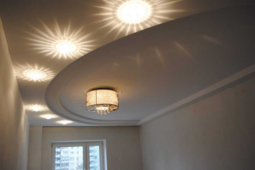 Гипсокартонный потолок ― используйте облегченные потолочные люстры.