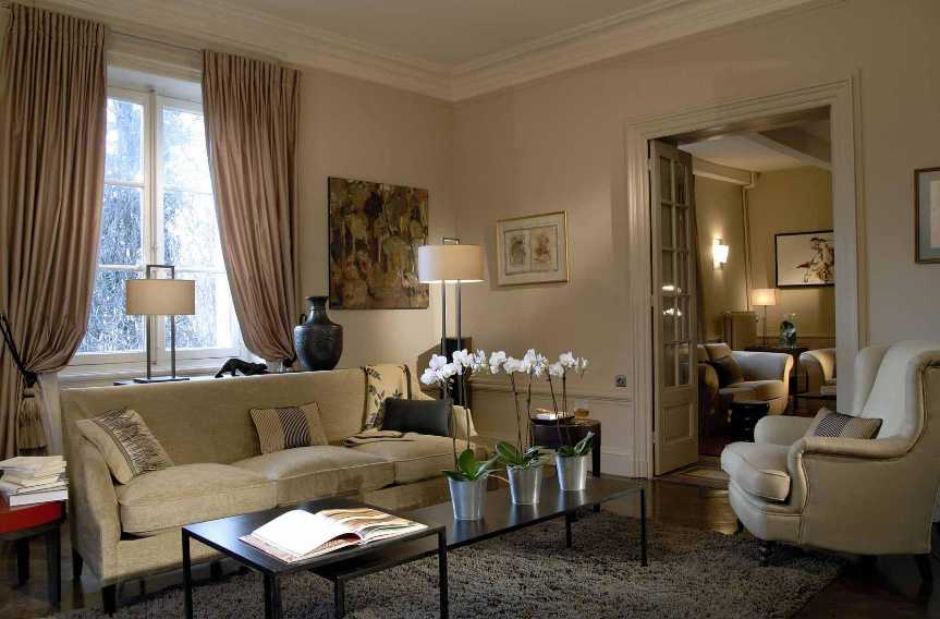 Важно, чтобы выбранная ткань сочеталась по фактуре и цвету с обивкой мягкой мебели, подушками и скатертями, образуя единый дизайнерский ансамбль
