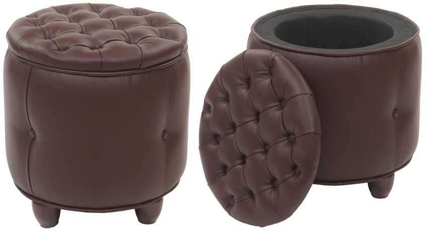 Круглый пуф играет роль элемента декора, украшающего интерьер квартиры. В качестве материала для обивки используется кожа или текстиль, а каркас изготавливается из дерева или посредством ковки. Если предусмотреть ящик, то он станет неплохим местом для сбережения аксессуаров.