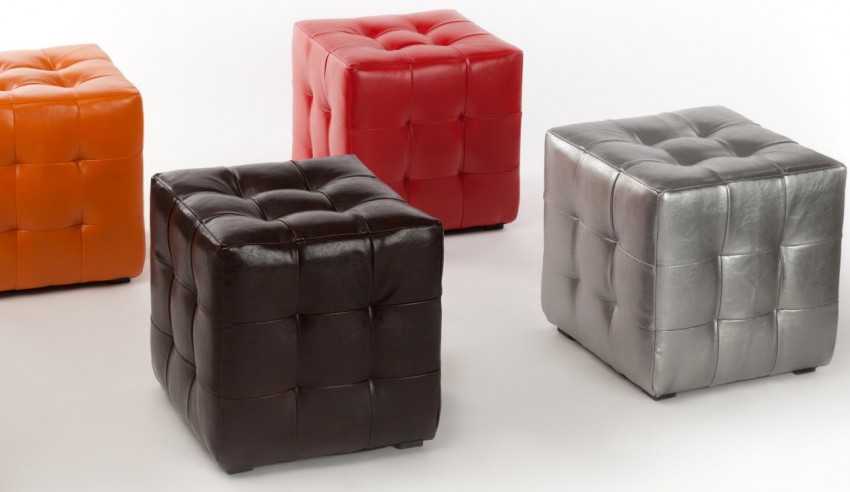 В качестве обивки пуфов используют приятные на ощупь материалы, отличающиеся легкостью в уходе: