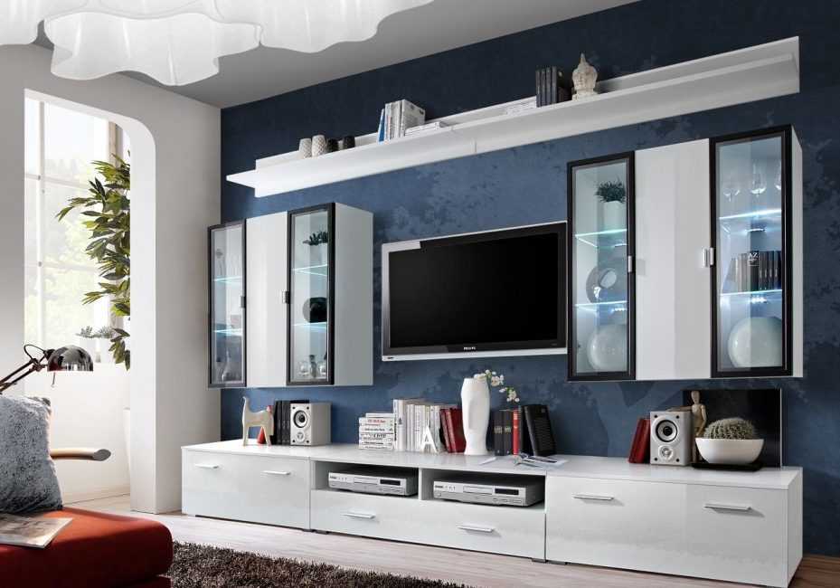 Выбрать мебель для гостиной не составит труда, так как белые стенки представлены на рынке в разнообразых вариациях.