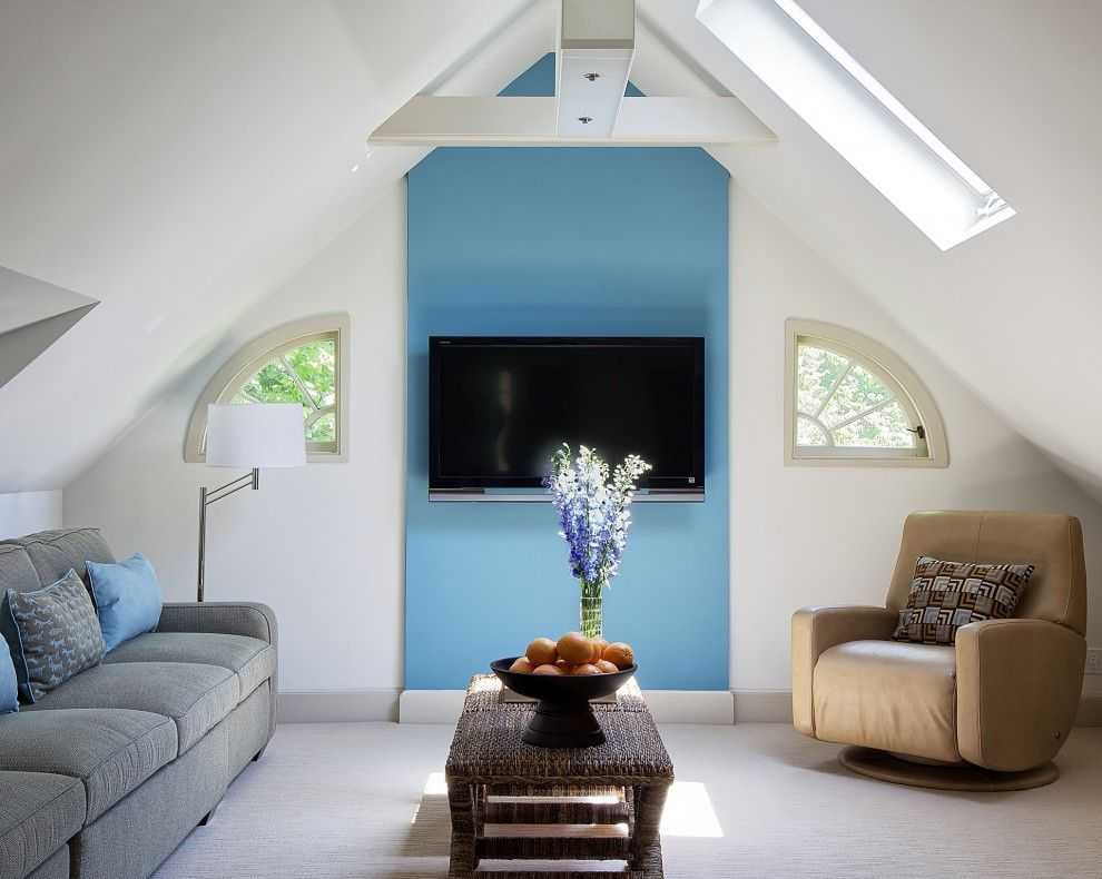 - В углу. Свободный угол в помещении можно максимально функционально задействовать с помощью телевизора. Кроме того данное расположение оптимизирует пространство и становится интересным стилистическим решением.