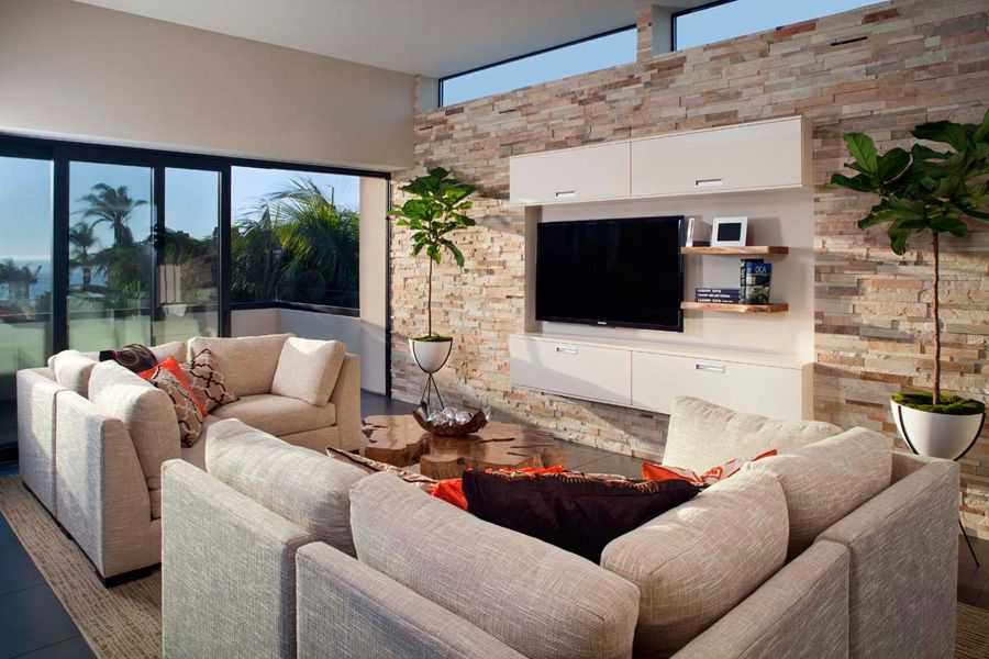 Варианты оформления стены под телевизор в гостиной