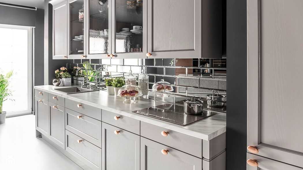 Главное, чтобы зеркальная поверхность не контактировала с жирами, которые обычно покрывают всю кухню. Случайно попавшие на нее капельки жира будет практически невозможно отмыть! Именно поэтому будет лучше, чтобы зеркала избегали контакта с вредными веществами.